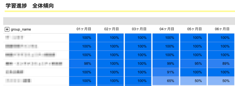 業務が忙しくまだコースを完了できていない人もいるので、個人的に言うと進捗率は「良いのかなあ」という感覚はありますが…(笑)。