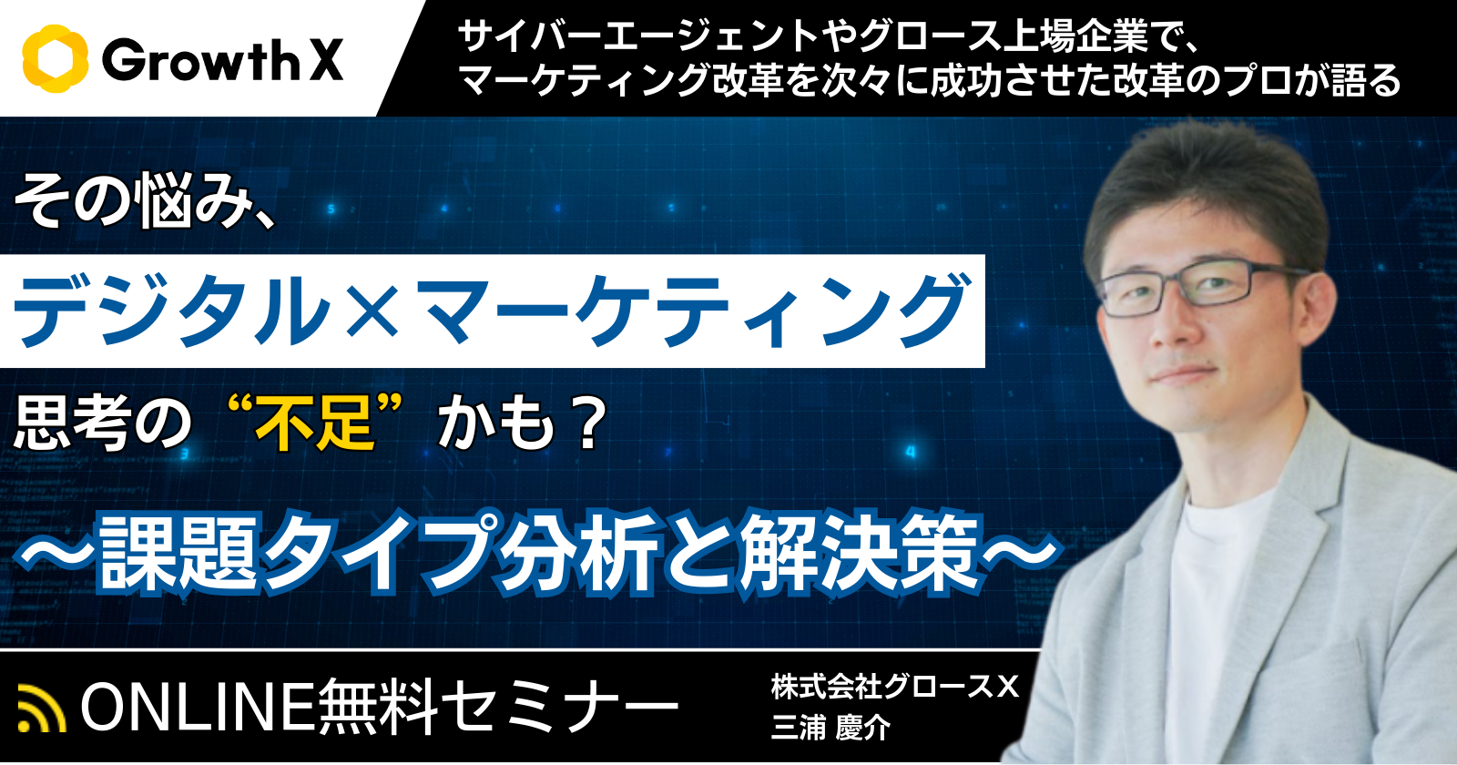 本ウェビナーでは、企業のDX推進を現場で牽引してきたグロースX・三浦が、多くの企業が陥りがちな組織課題をタイプ別に徹底分析。その根源にある「共通言語の不足」という問題に焦点を当て、具体的な解決策を解説します。