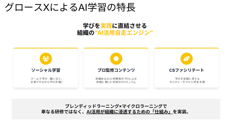 変化の激しいAI時代の到来においても、グロースXの『AI/DX人材編』をご導入いただくことで、AIを活用したお客様や社会の「グロース」に貢献できると確信しております。