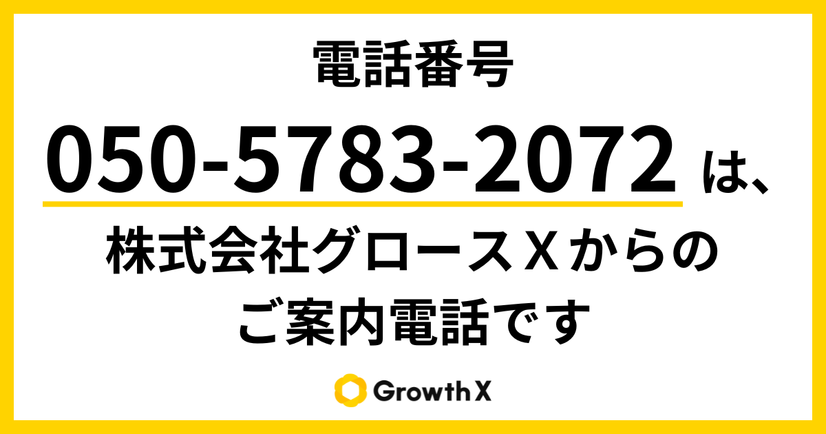 【電話番号】050-5783-2072(05057832072)は株式会社グロースXからのご案内番号です